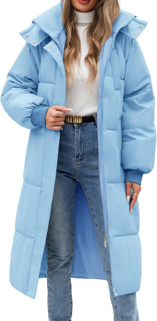Long Winter Puffer Coat for Women Winter Faux Fur Quilted Jackets with Detachable Hood Maxi Length Zip Outerwear