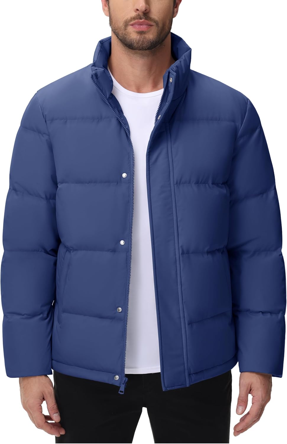 • Warm & Insulated Winter Jacket: This men’s puffer jacket is filled with 85% duck down, offering exceptional warmth and heat retention in cold weather. The soft down insulation lining ensures comfort for outdoor activities and daily wear during winter